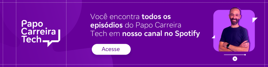 O podcast Papo Carreira Tech está disponível em nossos canais no Spotify e YouTube gratuitamente. Dê o play e fique à vontade para maratonar!